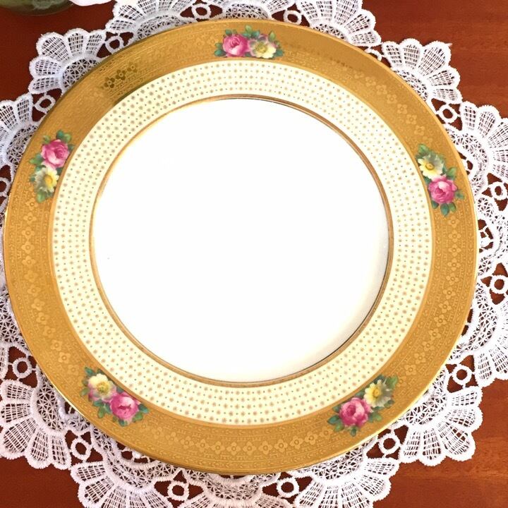 イギリス コウルドン 金彩とお花、ドットのデザインが美しいプレート