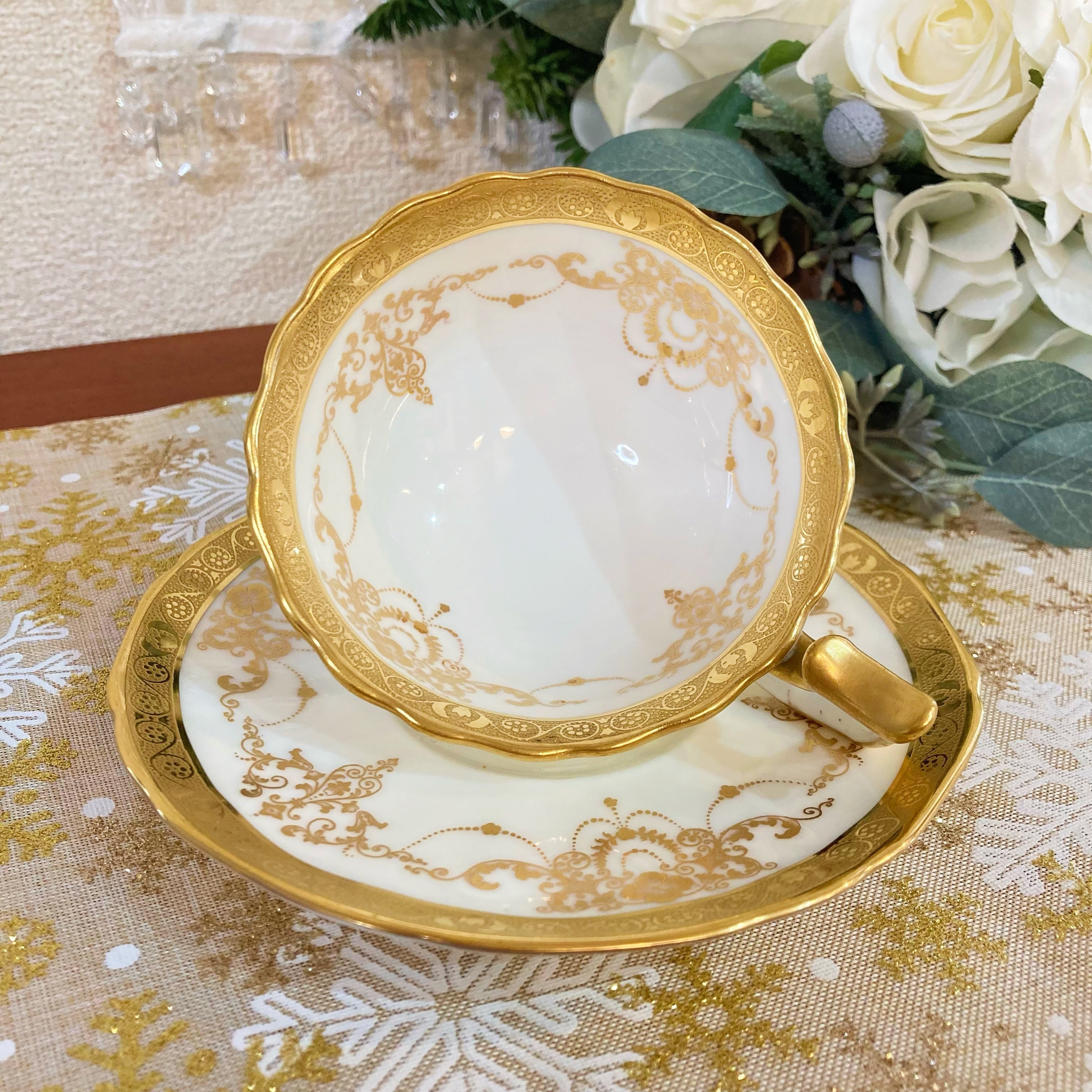 コウルドン、1904年から1920年までのバックスタンプ が入った、ゴールドのカップ&ソーサー です。