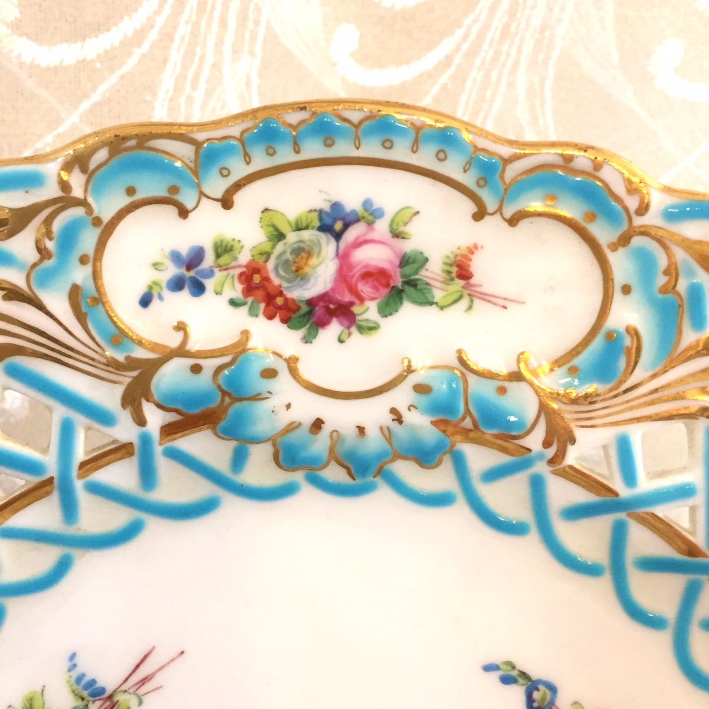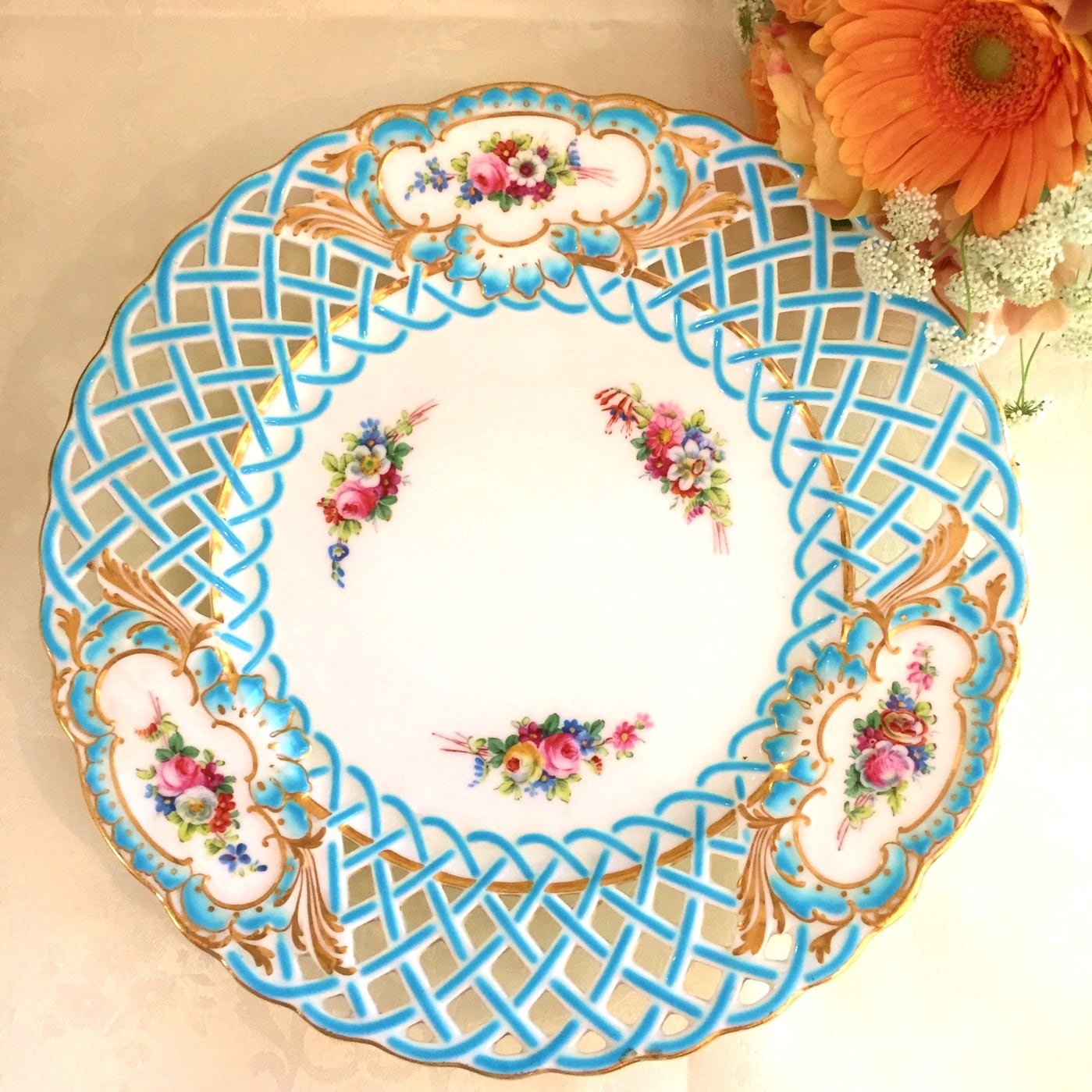 ミントン ターコイズブルーのレース縁キャビネットプレート
