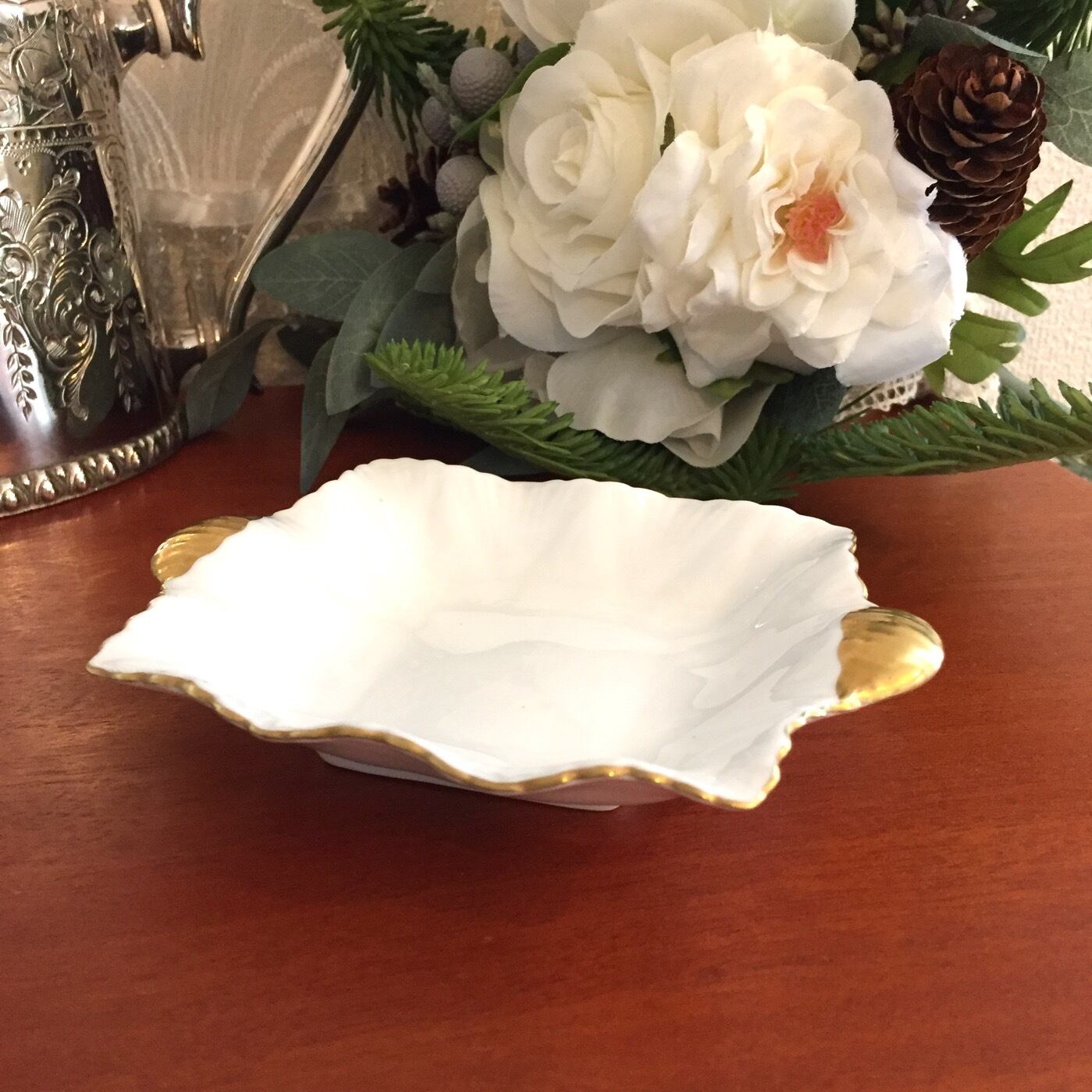シェリーの小皿。ストックのお花が描かれたお皿と、金彩のお皿、どちらも可愛いお品です。