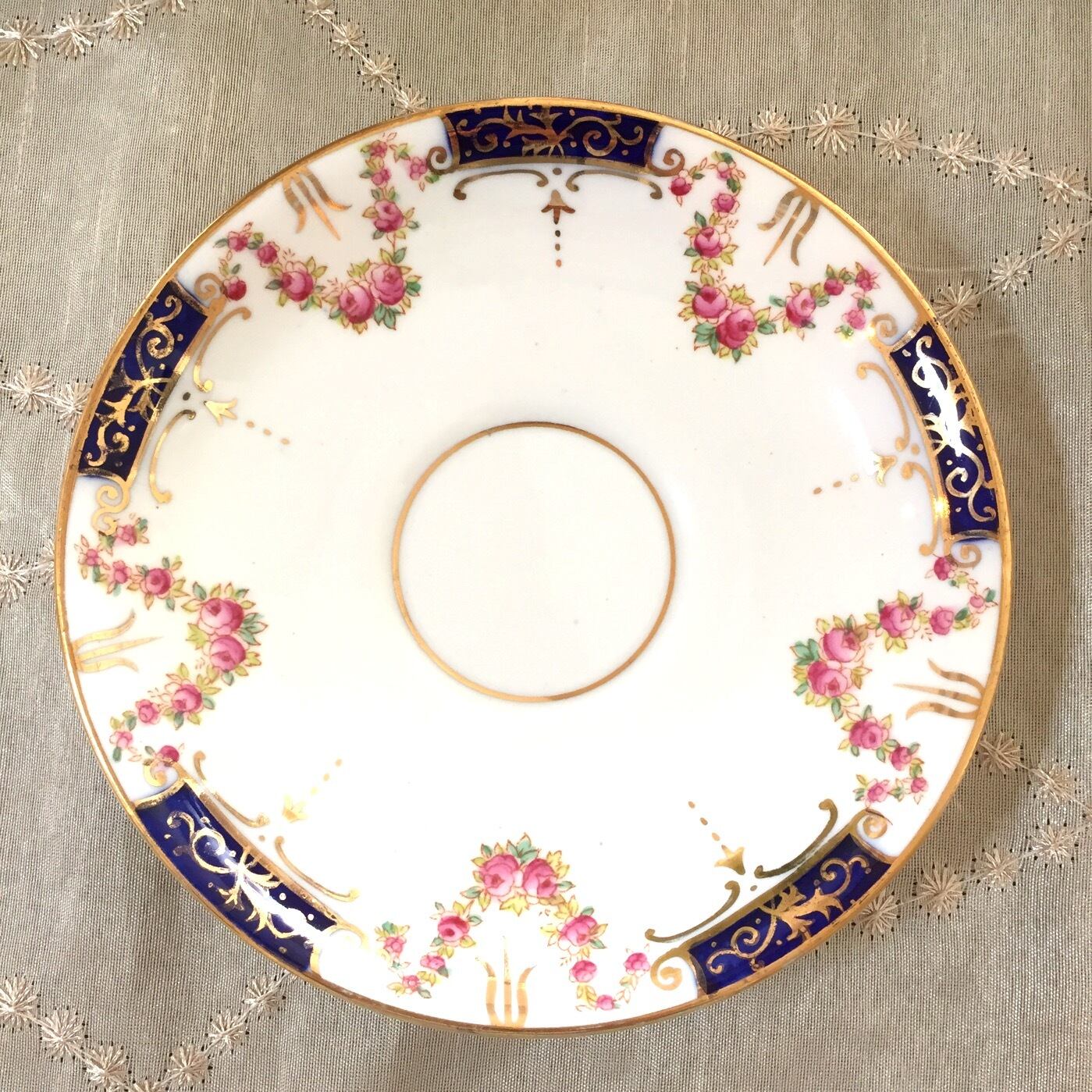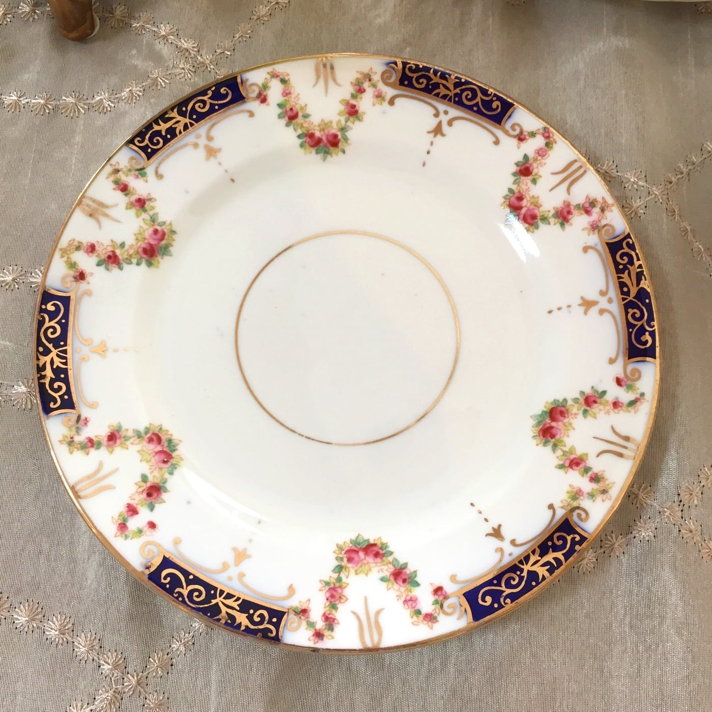 レッドファーン&ドレイクフォード コバルトブルーと薔薇のガーランドが美しい カップ&ソーサーとデザートプレートのトリオB